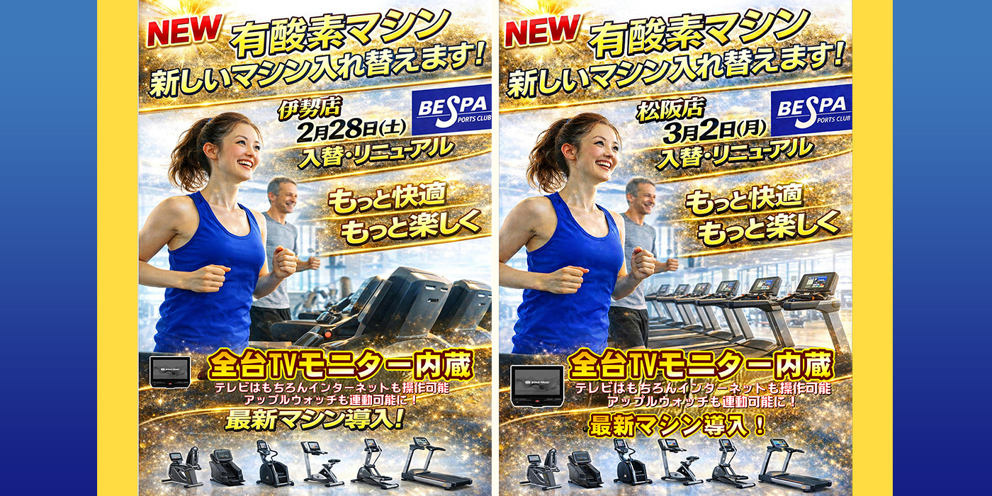 有酸素マシンリニューアルします!!